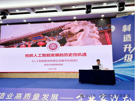 易海明主任以“制造業(yè)如何搶抓人工智能發(fā)展的歷史性機(jī)遇”為題,從認(rèn)識(shí)人工智能模型,培育人工智能模型的迫切性,培育人工智能模型的戰(zhàn)略性要素,詳解人工智能模型培育案例和趨勢(shì)四個(gè)方面系統(tǒng)剖析了人工智能技術(shù)演進(jìn)脈絡(luò)及其與制造業(yè)融合的核心場(chǎng)景,結(jié)合國(guó)內(nèi)外標(biāo)桿案例,為在場(chǎng)企業(yè)家描繪了AI賦能研發(fā)設(shè)計(jì)、生產(chǎn)流程優(yōu)化、供應(yīng)鏈管理、質(zhì)量控制和精準(zhǔn)營(yíng)銷(xiāo)的全鏈條圖景?;?dòng)環(huán)節(jié),企業(yè)家結(jié)合自身轉(zhuǎn)型痛點(diǎn)踴躍提問(wèn),易主任就技術(shù)選型、投入產(chǎn)出比、安全風(fēng)險(xiǎn)等實(shí)際問(wèn)題進(jìn)行了針對(duì)性解答,現(xiàn)場(chǎng)交流氣氛熱烈。