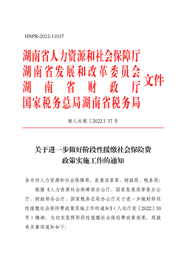 湖南印發(fā)《關(guān)于進(jìn)一步做好階段性緩繳社會(huì)保險(xiǎn)費(fèi)政策實(shí)施工作有關(guān)問(wèn)題的通知》