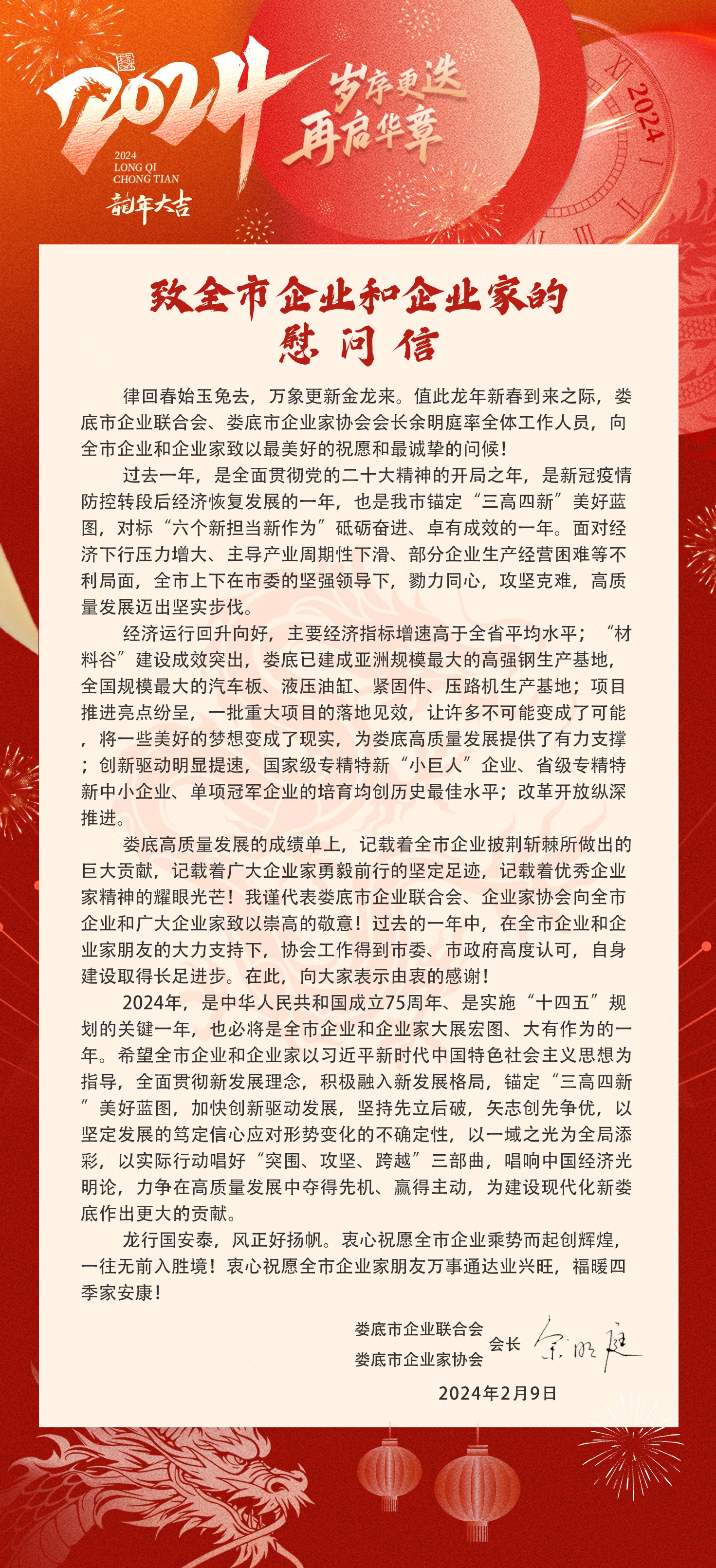 致全市企業(yè)和企業(yè)家的慰問信
