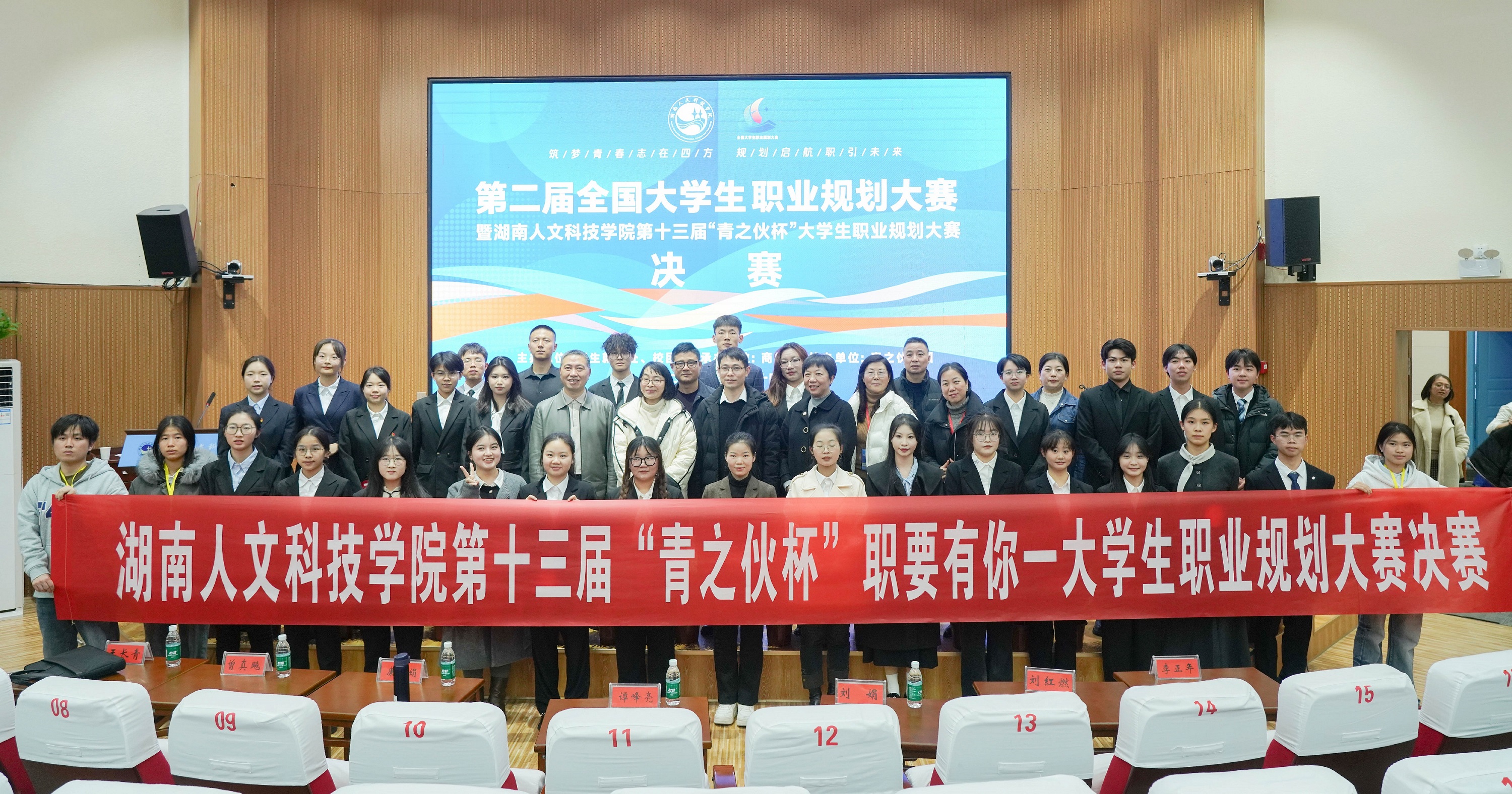 為貫徹落實黨中央、國務院關于高校畢業(yè)生就業(yè)工作的決策部署,加強高校就業(yè)指導,增強大學生生涯規(guī)劃意識,促進高校畢業(yè)生高質量充分就業(yè)。12月10日,第二屆全國大學生職業(yè)規(guī)劃大賽暨湖南人文科技學院第十三屆“青之伙杯”職要有你——大學生職業(yè)規(guī)劃大賽在湖南人文科技學院匠成樓報告廳舉行。校黨委委員、副校長譚峰亮、婁底市人力資源和社會保障局就業(yè)服務中心創(chuàng)業(yè)服務部部長康杜娟、婁底市企業(yè)聯(lián)合會副秘書長兼校企合作宣傳部部長劉娟、創(chuàng)新創(chuàng)業(yè)指導中心黨支部書記曾真飚、招生就業(yè)處處長劉紅燃出席并頒獎,參加活動的還有利通磁電、市節(jié)能環(huán)保產(chǎn)業(yè)促進中心、湘輝智匯人力資源和洪申科技等企業(yè)負責人。