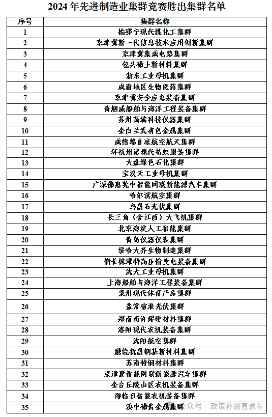 2024年先進制造業(yè)集群競賽勝出集群名單公示