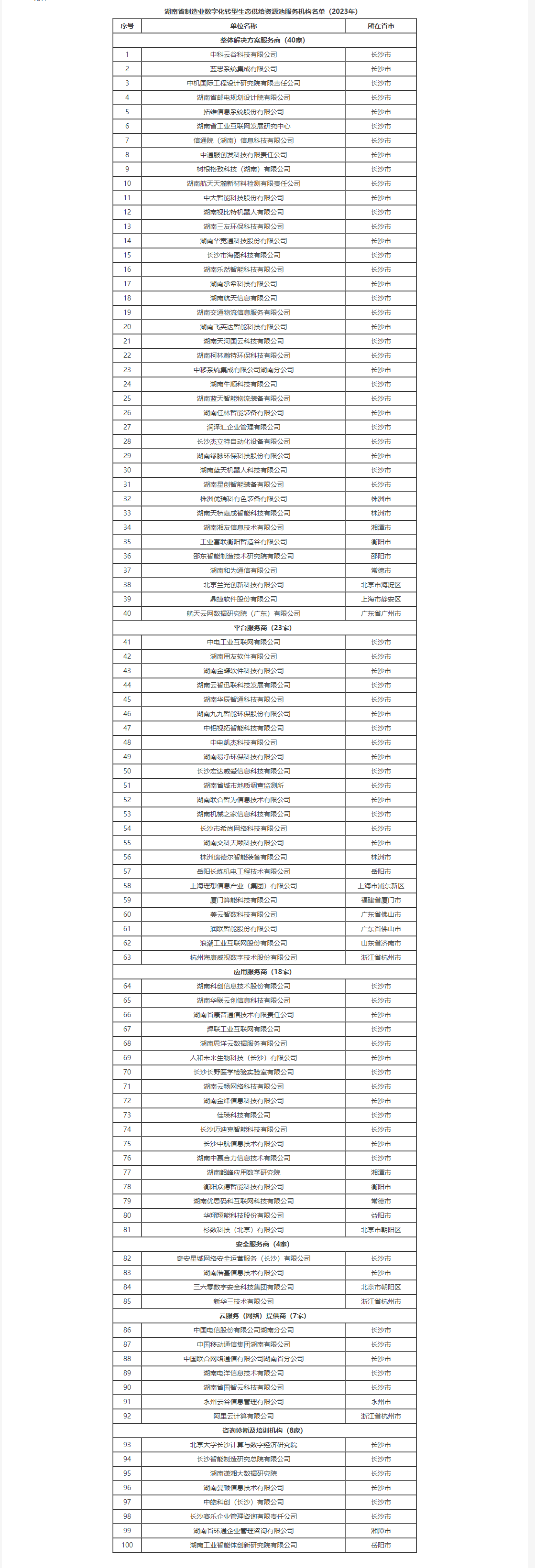 附件:湖南省制造業(yè)數(shù)字化轉(zhuǎn)型生態(tài)供給資源池服務(wù)機(jī)構(gòu)名單(2023年)