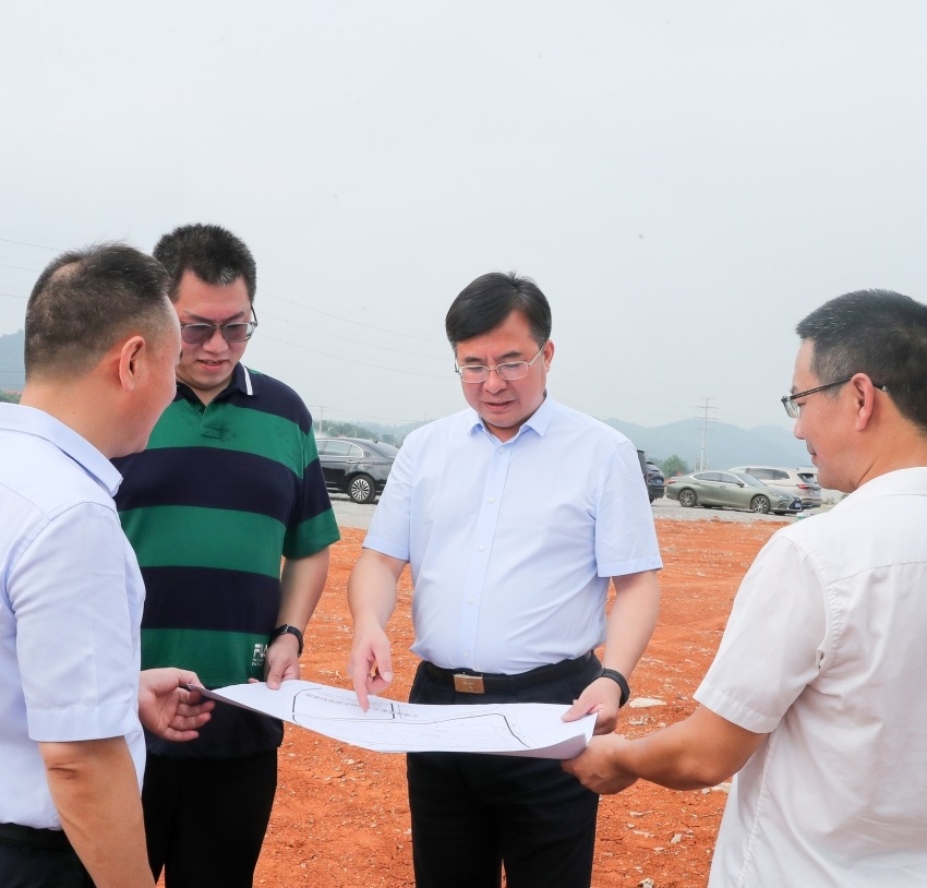 △鄒文輝在愛派爾工業(yè)互聯(lián)網(wǎng)+數(shù)字化智能制造產(chǎn)業(yè)園項(xiàng)目工地調(diào)研。